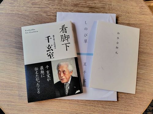 法要後の家元 坐忘斎宗匠のご挨拶では、ご自身のエピソードも交えながらも、昨日の「千玄室お別れの会」のこともあり、鵬雲斎大宗匠(千玄室)のお話が深く胸にしみました
