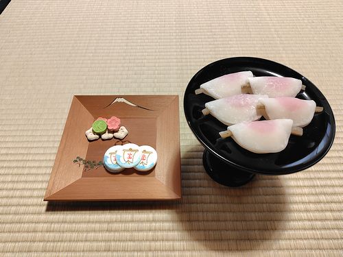 ChiちゃんとMaちゃんに手伝ってもらって、花びら餅と薄茶を一服差上げます