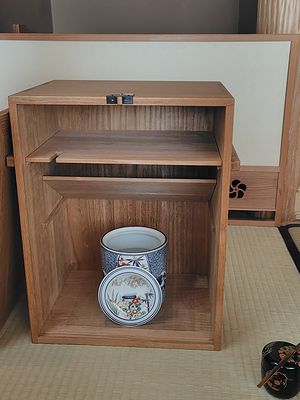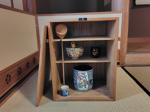 共蓋の水指を使うときは、中棚を動かして斜めにする変わった点前も