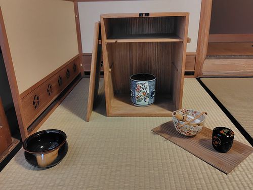 棗、水指を飾った点前から、慣れたら柄杓、蓋置それから茶碗も飾る点前まで