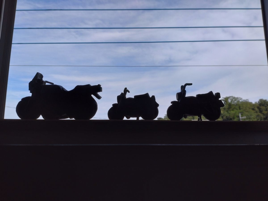 北海道へ行ったとき、頼んだものが届きました 車検も保険もいらないオートバイ3台 いい味でてますよね カワサキZ1000RとHONDAモンキーZ50A この木製オートバイは、せっくん (砂澤聖太郎 君)の木彫作品 サインは、2022 JULY SEITA こんな天気のときは、...