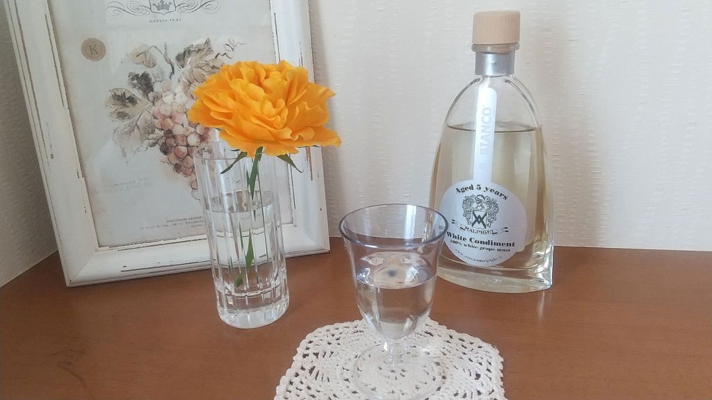 Chiちゃんからのうれしいプレゼント イタリア マルピーギ社のバルサモ・ビアンコ 珍しい透明なバルサミコ 自社農園で栽培された白ぶどう果汁のみ使用 5年間熟成のすっきりした酸味と甘みのバルサミコ 透明だから色がつかないので、甘酢のように酢の物など... -